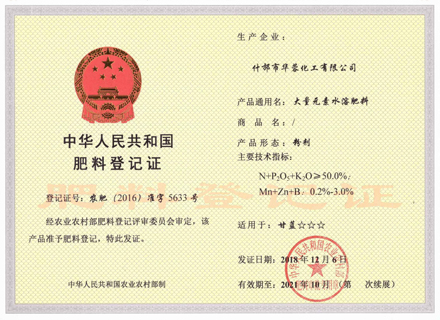什邡市華蓉化工有限公司原名什邡華蓉科技有限責(zé)任公司,位于磷礦資源豐富的四川省什邡市,距成都60公里,交通運(yùn)輸便利,是一家專業(yè)生產(chǎn)、研發(fā)精細(xì)磷化工系列產(chǎn)品的大型生產(chǎn)企業(yè)。生產(chǎn)設(shè)備先進(jìn),技術(shù)研發(fā)團(tuán)隊(duì)強(qiáng)大,現(xiàn)公司占地面積約30000平方米,擁有5條生產(chǎn)線,主要生產(chǎn)大量元素水溶肥、磷酸二氫鉀、磷酸二氫銨、磷酸氫二銨、硝酸鉀、磷酸脲以及磷酸,年總產(chǎn)量為100000噸以上。公司資質(zhì)齊全,管理規(guī)范,已取得安全生產(chǎn)許可證、ISO9001:2015質(zhì)量管理體系認(rèn)證、食品生產(chǎn)許可證、工業(yè)產(chǎn)品生產(chǎn)許可證、自營(yíng)進(jìn)出口經(jīng)營(yíng)權(quán)進(jìn)出口證書(shū)以及出口歐盟國(guó)家部分產(chǎn)品的REACH證書(shū)。